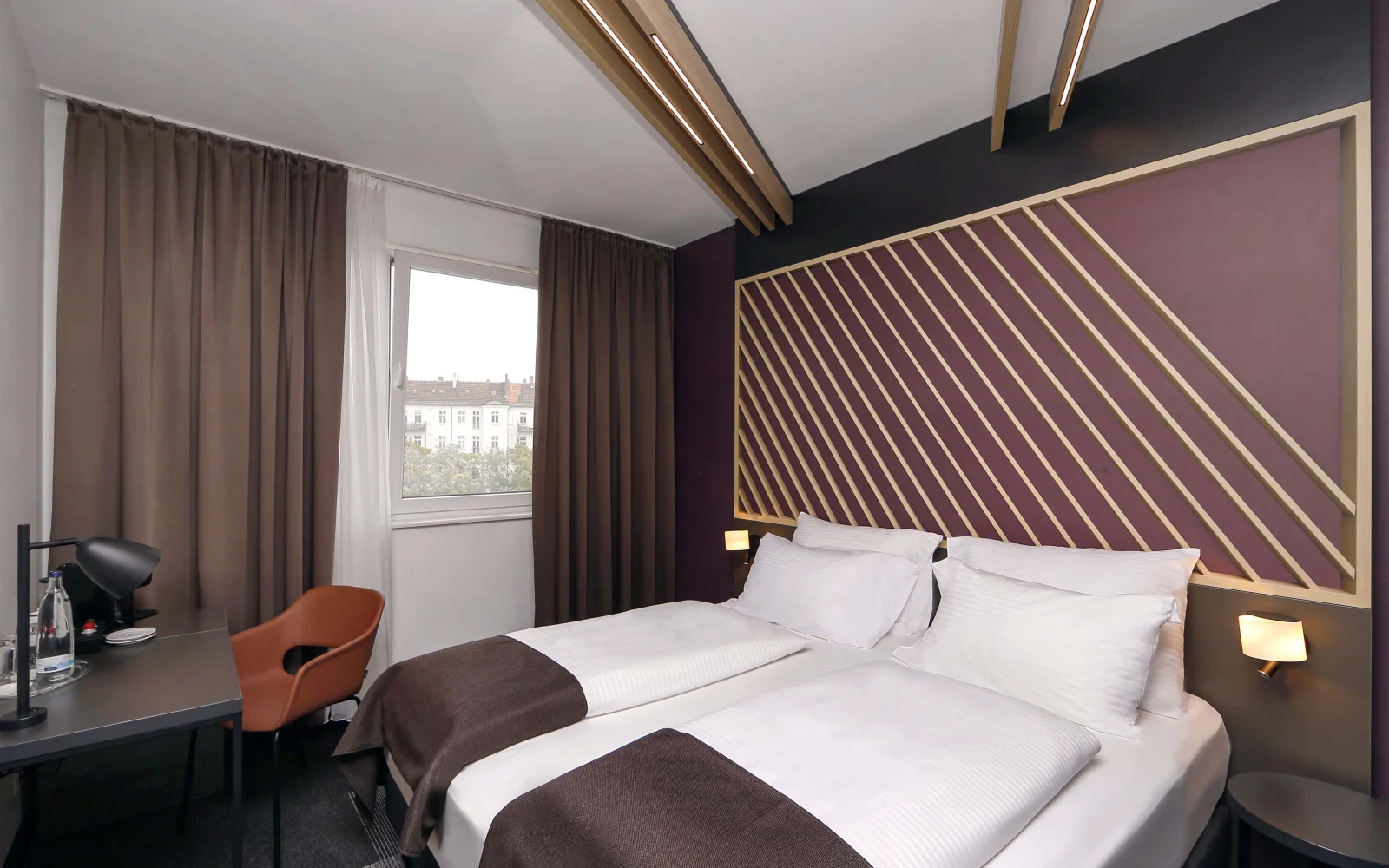 • Moderne Zimmer mit schallisolierten Fenstern.